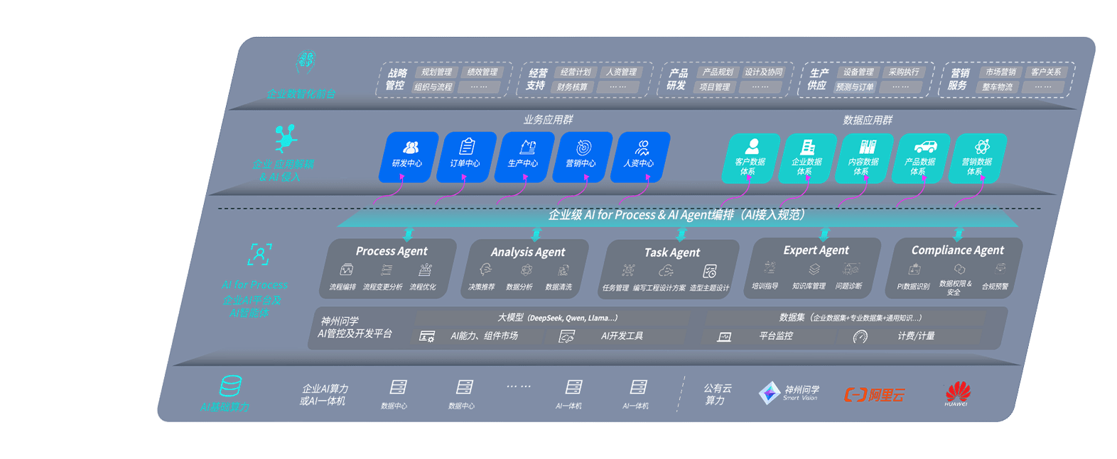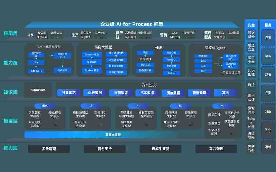 端到端的一站式AI工作空间深度融合了从企业战略规划到日常经营的全流程业务板块,,,定向解决车企内部领域多、、、、部门多、、、、链条长、、、、场景碎片化等难题,,,支持车企快速构建以AI为核心的生产力写作体系,,实现任务执行与AI能力的无缝集成与交互
